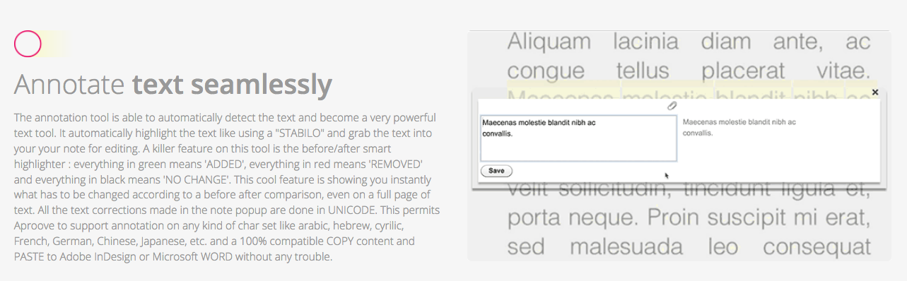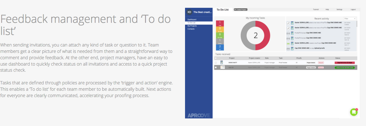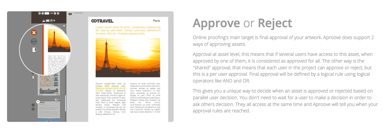 Aproove vous permet de collaborer de manière créative et vous permet de gérer vos BAT, relectures, … en ligne, plus rapidement et efficacement que d’une manière manuelle, conventionnelle.
