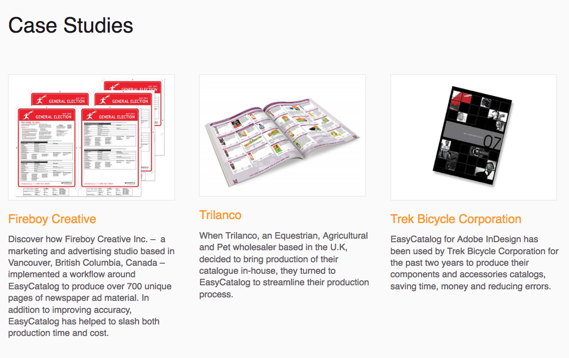 Ideal for time-critical publications, EasyCatalog can dramatically speed up page make-up time and ensure your documents remain error free. Trusted by thousands of users in over thirty countries across six continents, EasyCatalog has quickly established itself as one of the most powerful and flexible database publishing solutions for Adobe® InDesign®.